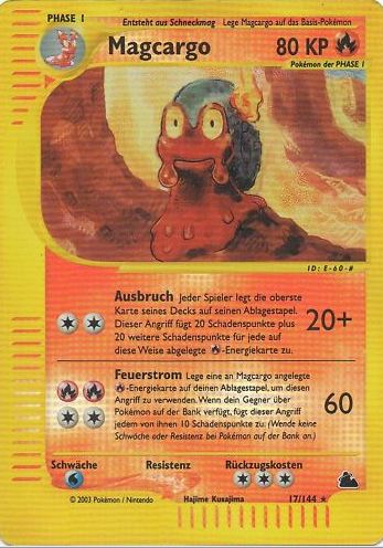 | Kaufen? | Kaufen Sie Ihre Magcargo Pokemon-Karte aus dem Skyridge-Erweiterung. |
