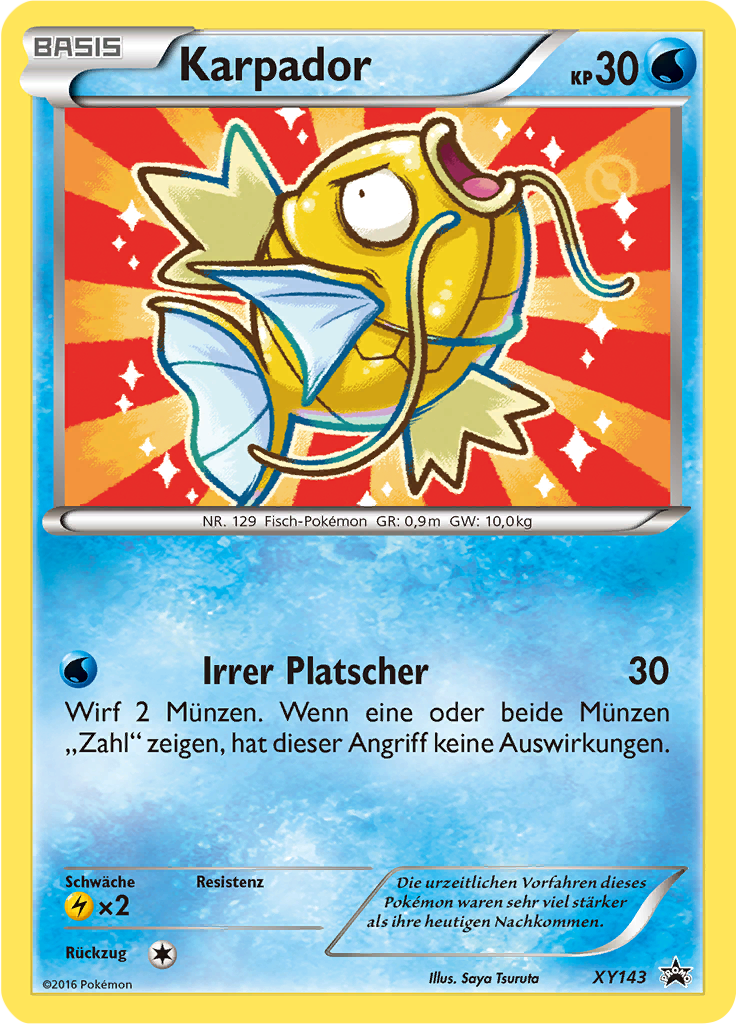 | Kaufen? | Kaufen Sie Ihre Karpador Pokemon-Karte aus dem XY Promos-Erweiterung. |
