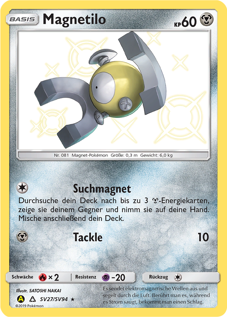 | Alle Karten | Sehen Sie alle Magnetilo-Pokémonkarten in einer Übersicht. |