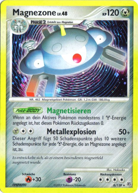 | Kaufen? | Kaufen Sie Ihre Magnezone Pokemon-Karte aus dem Diamant & Perl-Erweiterung. |