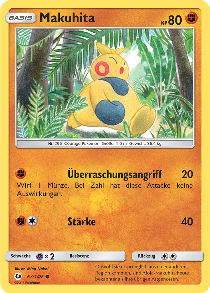 | Kaufen? | Kaufen Sie Ihre Makuhita Pokemon-Karte aus dem Sonne & Mond-Erweiterung. |