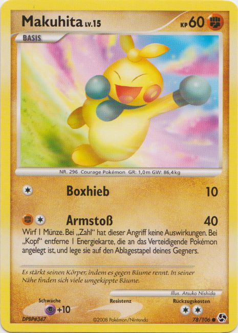 | Alle Karten | Sehen Sie alle Makuhita-Pokémonkarten in einer Übersicht. |