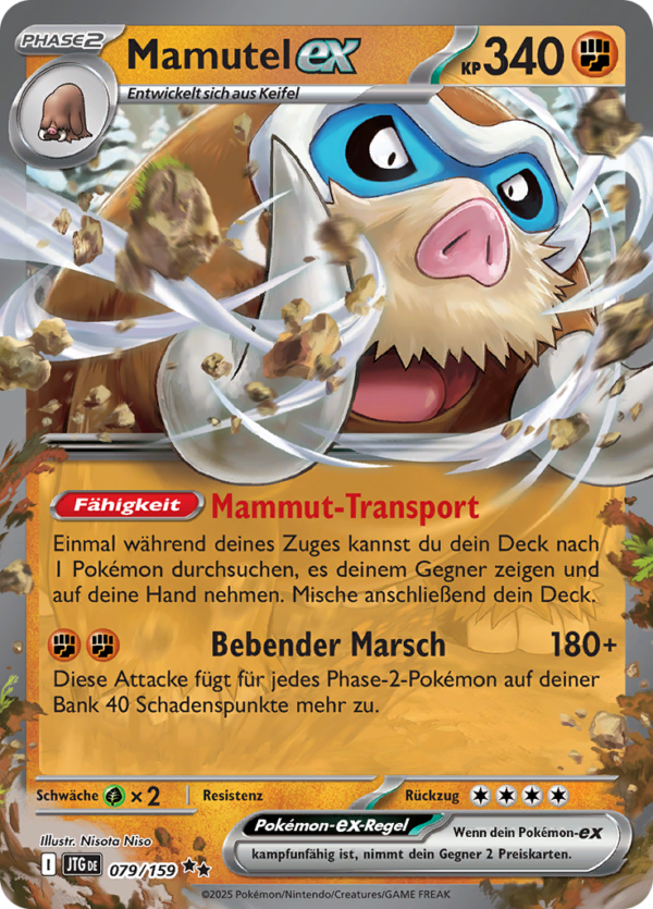 | Kaufen? | Kaufen Sie Ihre Mamutel-ex Pokemon-Karte aus dem Reisegefahrten-Erweiterung. |