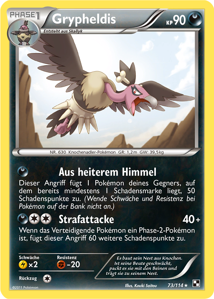 | Kaufen? | Kaufen Sie Ihre Grypheldis Pokemon-Karte aus dem Schwarz & Weiss-Erweiterung. |