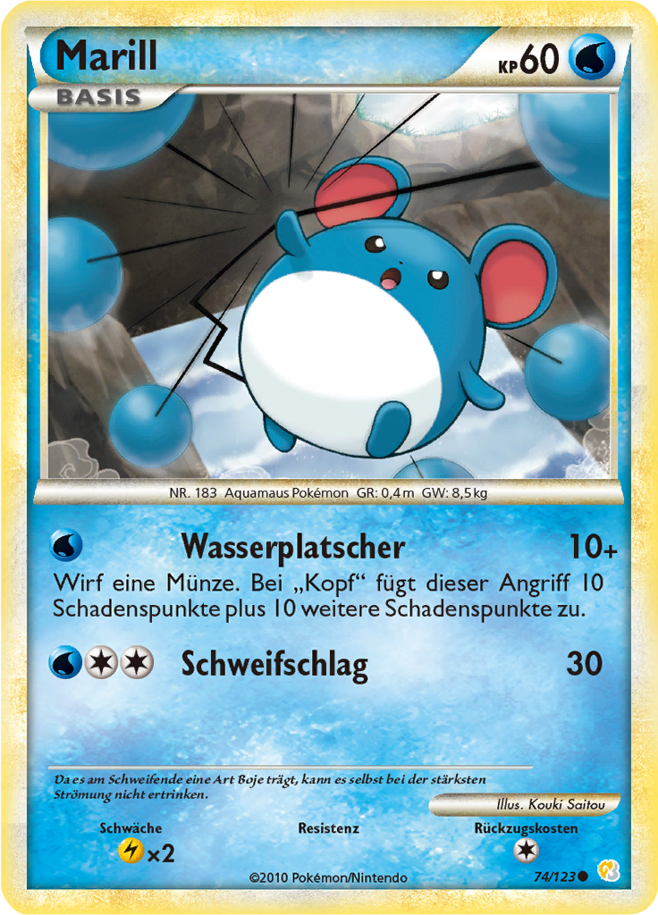 | Kaufen? | Kaufen Sie Ihre Marill Pokemon-Karte aus dem Heartgold und Soulsilver-Erweiterung. |