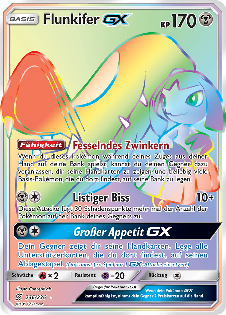 | Alle Karten | Sehen Sie alle Flunkifer-Pokémonkarten in einer Übersicht. |