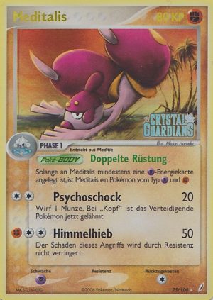 | Kaufen? | Kaufen Sie Ihre Meditalis Pokemon-Karte aus dem Stellarkrone-Erweiterung. |