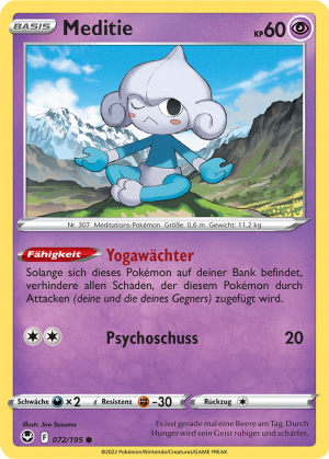 | Alle Karten | Sehen Sie alle Meditie-Pokémonkarten in einer Übersicht. |