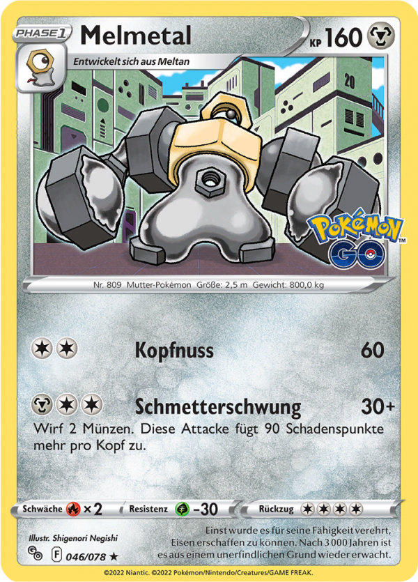 | Kaufen? | Kaufen Sie Ihre Melmetal Pokemon-Karte aus dem Pokémon GO-Erweiterung. |