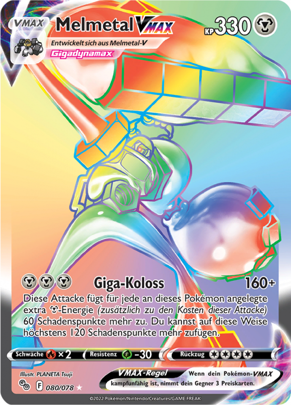 | Kaufen? | Kaufen Sie Ihre Melmetal VMAX Pokemon-Karte aus dem Pokémon GO-Erweiterung. |