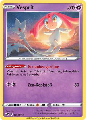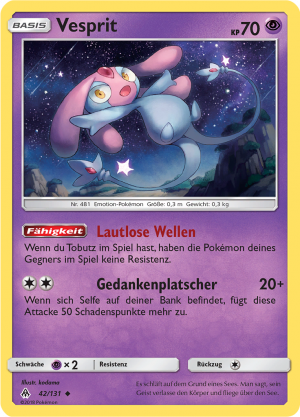 | Alle Karten | Sehen Sie alle Vesprit-Pokémonkarten in einer Übersicht. |