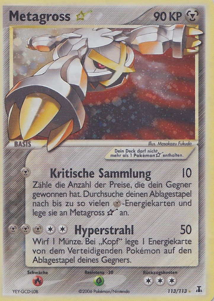 | Kaufen? | Kaufen Sie Ihre Metagross Pokemon-Karte aus dem Delta Species-Erweiterung. |