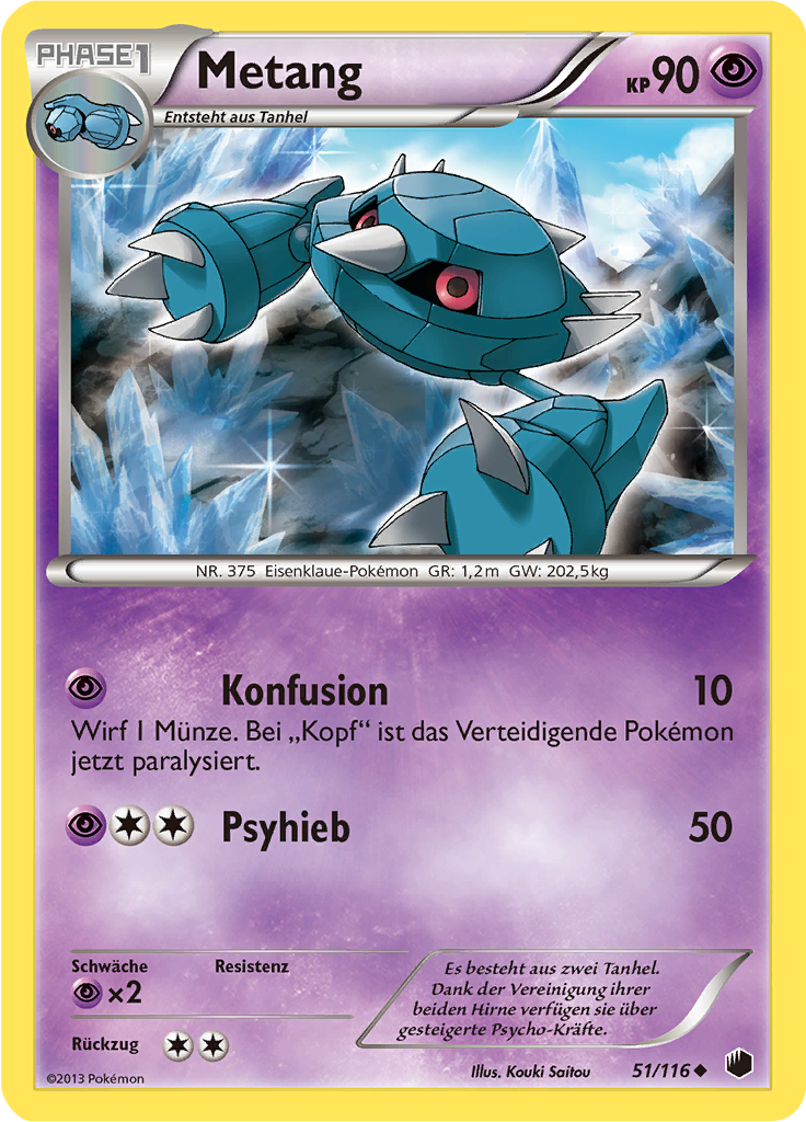 | Kaufen? | Kaufen Sie Ihre Metang Pokemon-Karte aus dem Plasma-Frost-Erweiterung. |