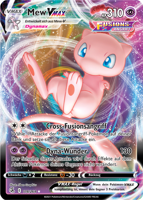 | Kaufen? | Kaufen Sie Ihre Mew VMAX Pokemon-Karte aus dem Fusionsangriff-Erweiterung. |