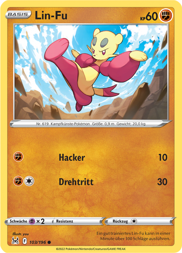 | Kaufen? | Kaufen Sie Ihre Lin-Fu Pokemon-Karte aus dem Verlorener Ursprung-Erweiterung. |
