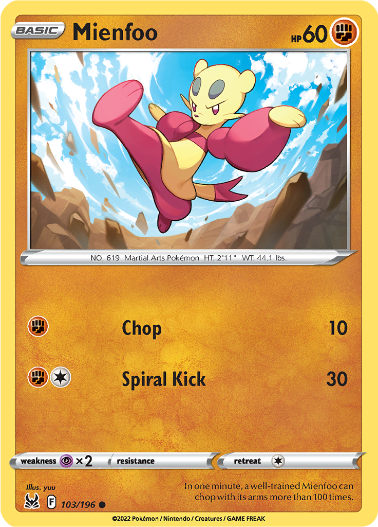 | Kaufen? | Kaufen Sie Ihre Mienfoo Pokemon-Karte aus dem Lost Origin-Erweiterung. |