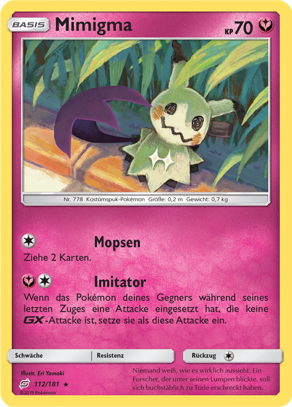| Kaufen? | Kaufen Sie Ihre Mimigma Pokemon-Karte aus dem Teams sind Trumpf-Erweiterung. |