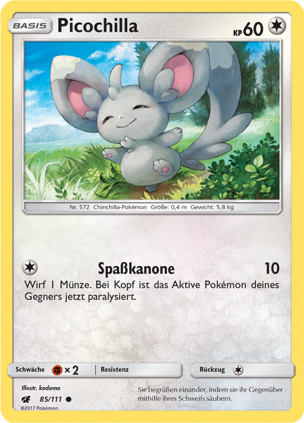 | Alle Karten | Sehen Sie alle Picochilla-Pokémonkarten in einer Übersicht. |