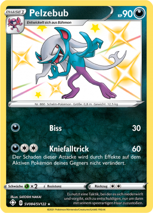 | Kaufen? | Kaufen Sie Ihre Pelzebub Pokemon-Karte aus dem Reisegefahrten-Erweiterung. |