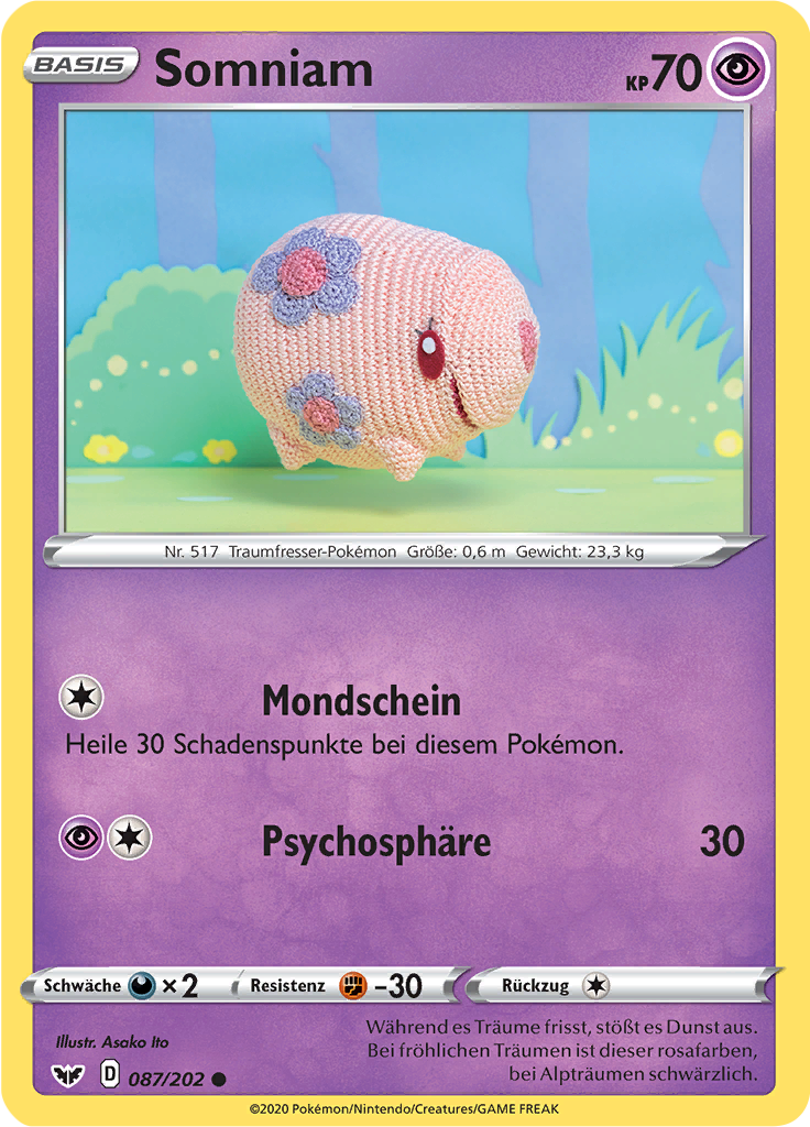 | Kaufen? | Kaufen Sie Ihre Somniam Pokemon-Karte aus dem Schwert & Schild-Erweiterung. |