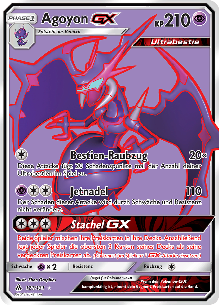 Kaufen? Kaufen Sie Ihre Agoyon-GX Pokemon-Karte aus dem Grauen der Lichtfinsternis-Erweiterung.