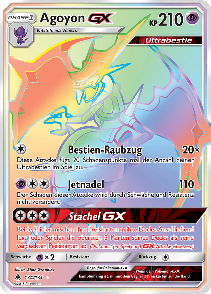 | Kaufen? | Kaufen Sie Ihre Agoyon-GX Pokemon-Karte aus dem Grauen der Lichtfinsternis-Erweiterung. |