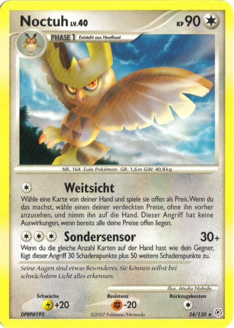 | Kaufen? | Kaufen Sie Ihre Noctuh Pokemon-Karte aus dem Diamant & Perl-Erweiterung. |