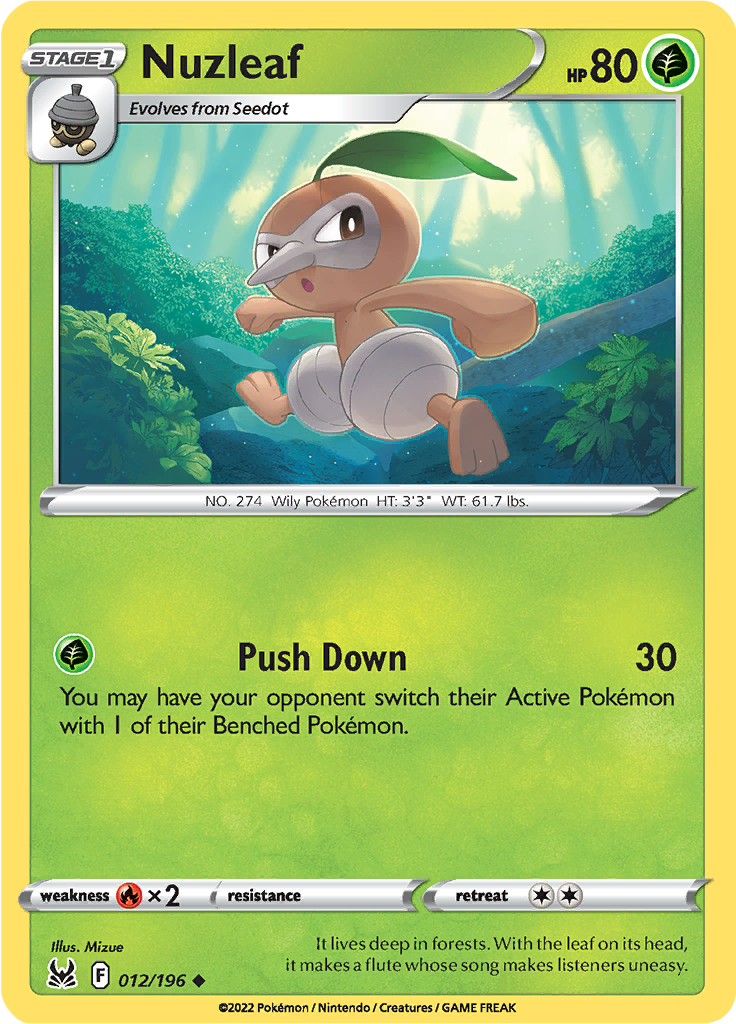 | Kaufen? | Kaufen Sie Ihre Nuzleaf Pokemon-Karte aus dem Lost Origin-Erweiterung. |