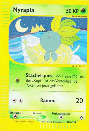 | Kaufen? | Kaufen Sie Ihre Myrapla Pokemon-Karte aus dem Aquapolis-Erweiterung. |