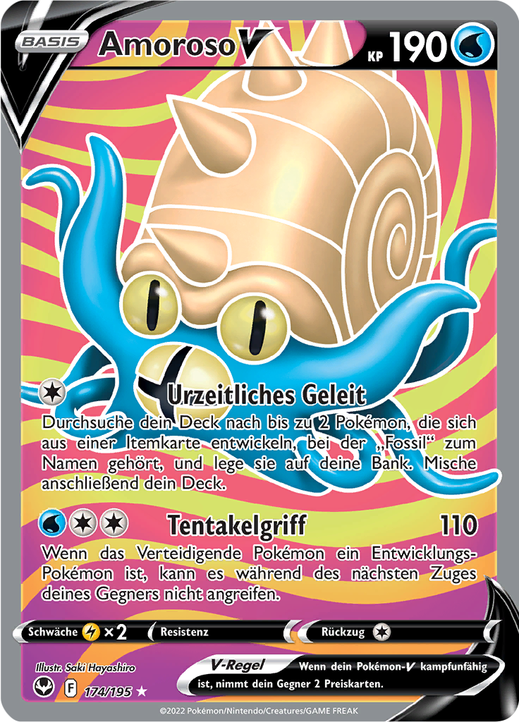 | Kaufen? | Kaufen Sie Ihre Amoroso V Pokemon-Karte aus dem Silberne Sturmwinde-Erweiterung. |