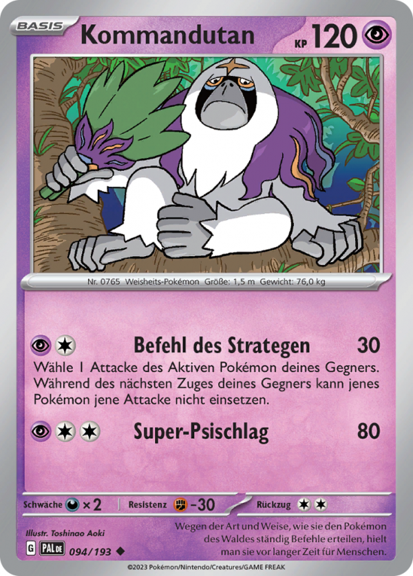| Kaufen? | Kaufen Sie Ihre Kommandutan Pokemon-Karte aus dem Entwicklungen in Paldea-Erweiterung. |