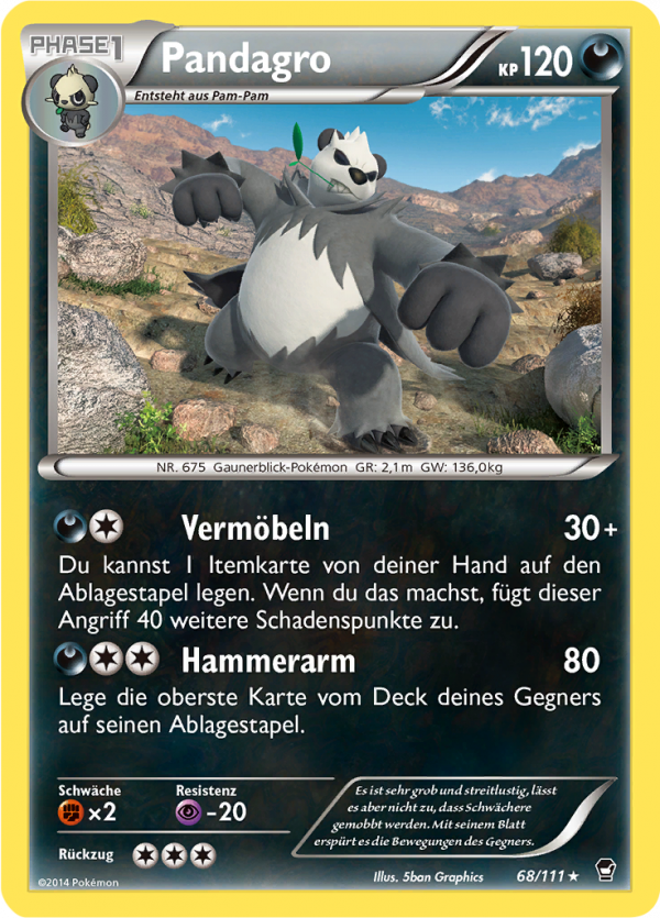 | Kaufen? | Kaufen Sie Ihre Pandagro Pokemon-Karte aus dem Fliegende Fäuste-Erweiterung. |