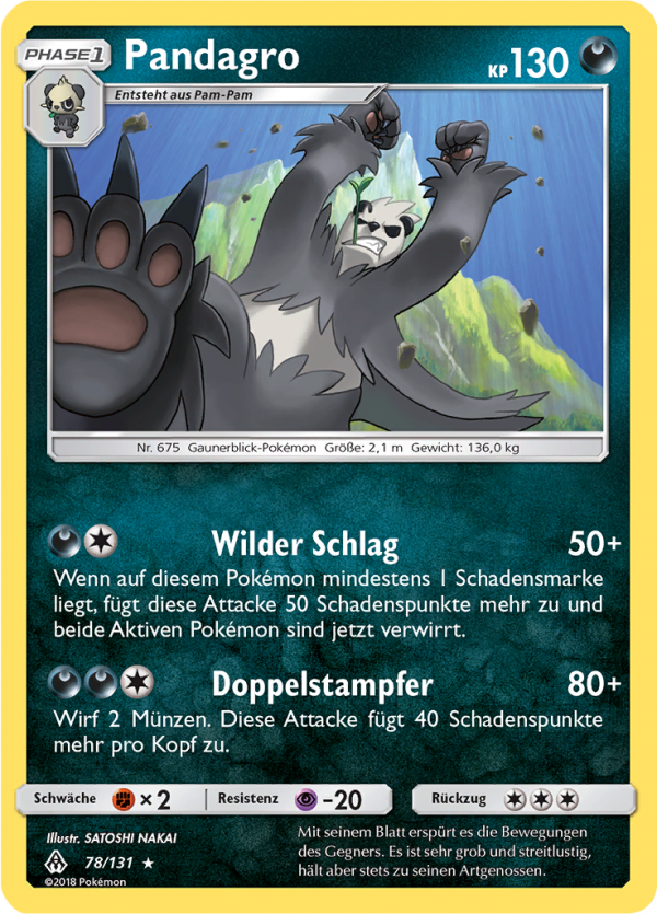 | Kaufen? | Kaufen Sie Ihre Pandagro Pokemon-Karte aus dem Grauen der Lichtfinsternis-Erweiterung. |
