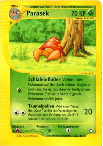 | Kaufen? | Kaufen Sie Ihre Parasek Pokemon-Karte aus dem Aquapolis-Erweiterung. |