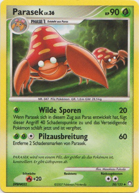 | Alle Karten | Sehen Sie alle Parasek-Pokémonkarten in einer Übersicht. |