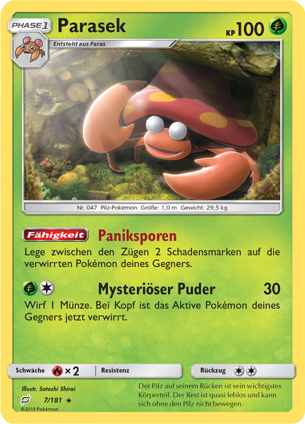 | Alle Karten | Sehen Sie alle Parasek-Pokémonkarten in einer Übersicht. |