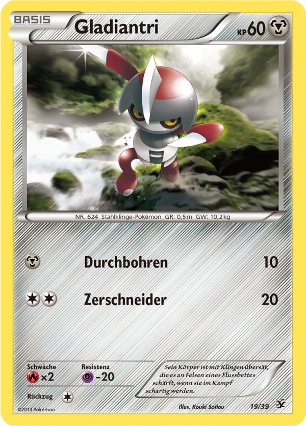 | Kaufen? | Kaufen Sie Ihre Gladiantri Pokemon-Karte aus dem Willkommen in Kalos-Erweiterung. |