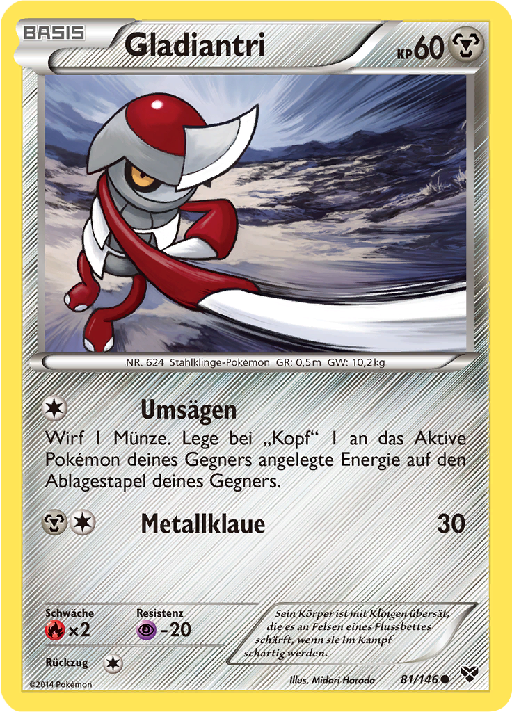 | Kaufen? | Kaufen Sie Ihre Gladiantri Pokemon-Karte aus dem XY-Erweiterung. |