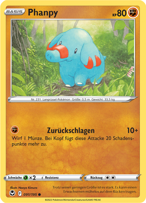 | Kaufen? | Kaufen Sie Ihre Phanpy Pokemon-Karte aus dem Silberne Sturmwinde-Erweiterung. |