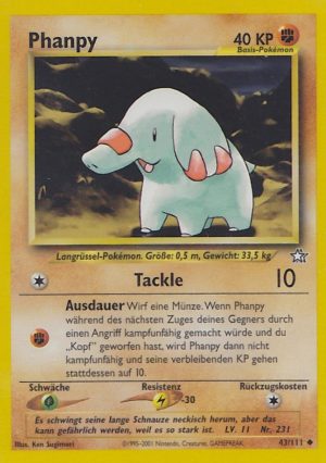 | Alle Karten | Sehen Sie alle Phanpy-Pokémonkarten in einer Übersicht. |