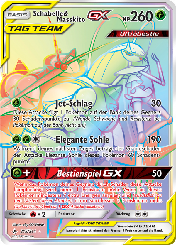 | Kaufen? | Kaufen Sie Ihre Schabelle & Masskito-GX Pokemon-Karte aus dem Kräfte im Einklang-Erweiterung. |