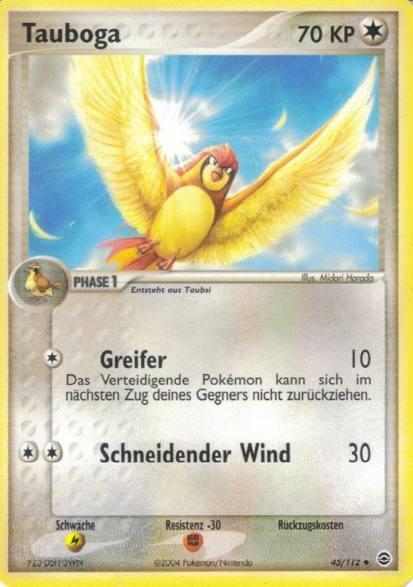 | Kaufen? | Kaufen Sie Ihre Tauboga Pokemon-Karte aus dem Feuerrot & Blattgrun-Erweiterung. |