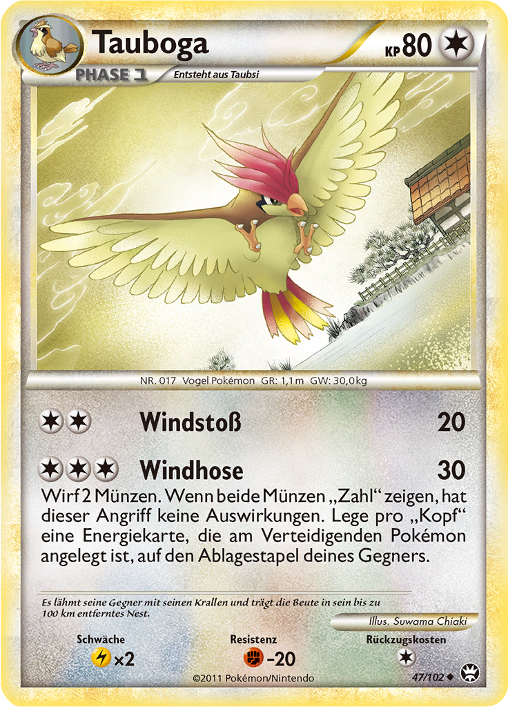 | Kaufen? | Kaufen Sie Ihre Tauboga Pokemon-Karte aus dem Triumph-Erweiterung. |