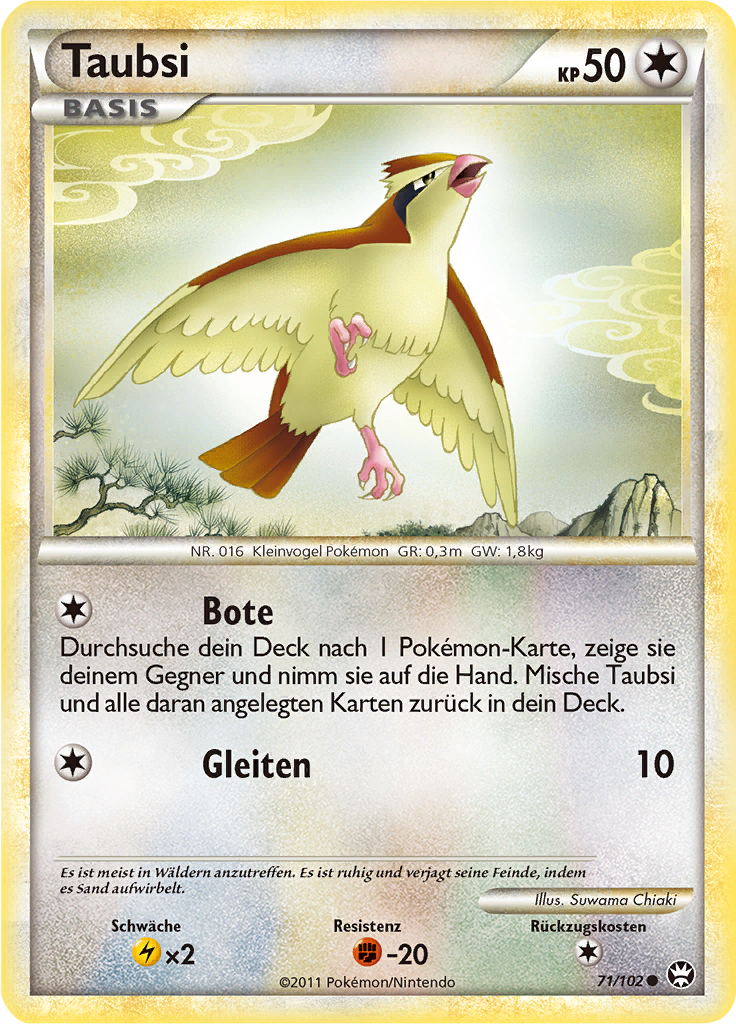 | Alle Karten | Sehen Sie alle Taubsi-Pokémonkarten in einer Übersicht. |