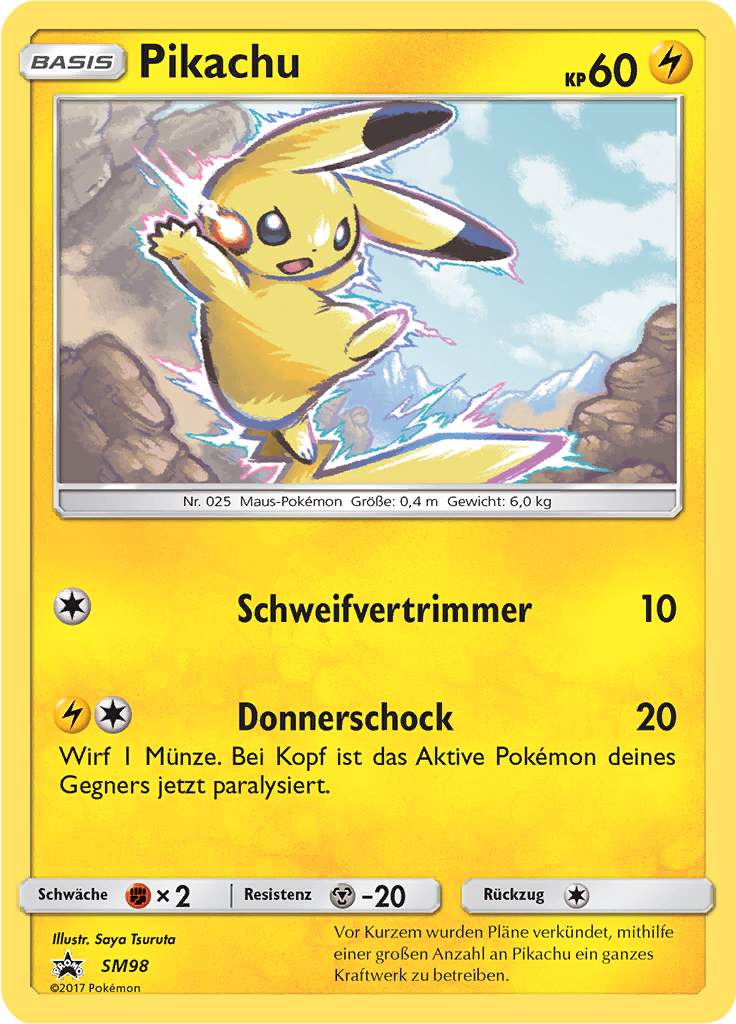 | Kaufen? | Kaufen Sie Ihre Pikachu Pokemon-Karte aus dem Sun & Moon Promos-Erweiterung. |