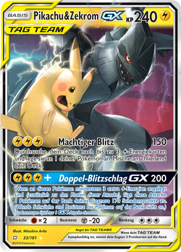 | Kaufen? | Kaufen Sie Ihre Pikachu & Zekrom-GX Pokemon-Karte aus dem Teams sind Trumpf-Erweiterung. |