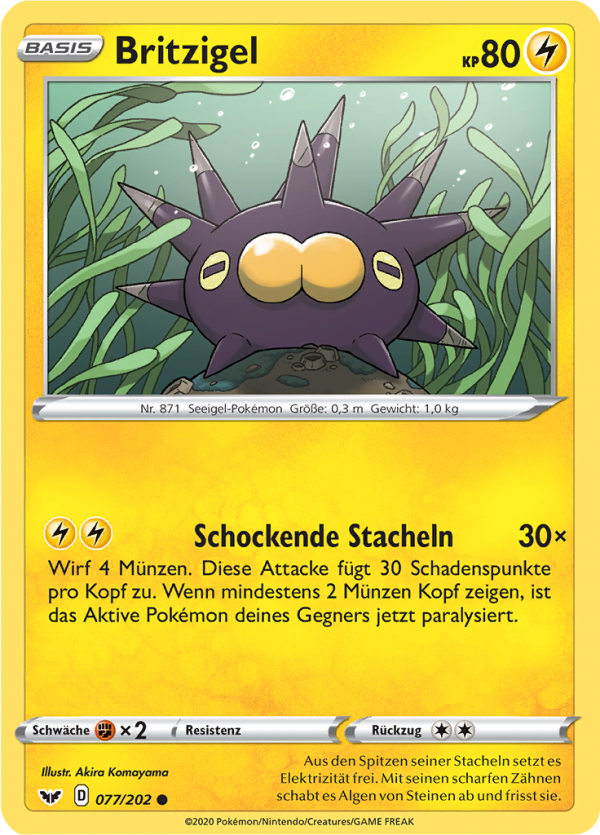 | Kaufen? | Kaufen Sie Ihre Britzigel Pokemon-Karte aus dem Schwert & Schild-Erweiterung. |
