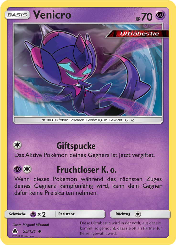 | Alle Karten | Sehen Sie alle Venicro-Pokémonkarten in einer Übersicht. |