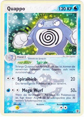 | Kaufen? | Kaufen Sie Ihre Quappo Pokemon-Karte aus dem Feuerrot & Blattgrun-Erweiterung. |