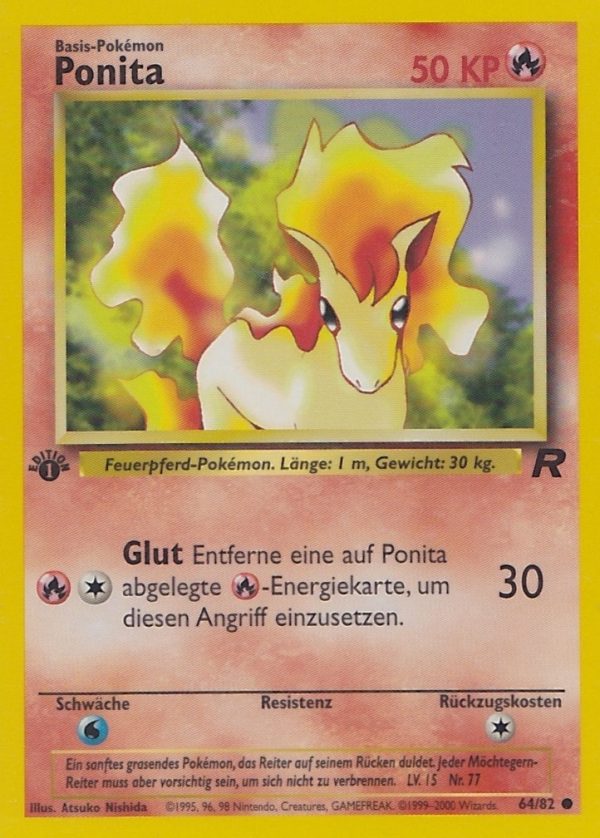 | Kaufen? | Kaufen Sie Ihre Ponita Pokemon-Karte aus dem Team Rocket-Erweiterung. |